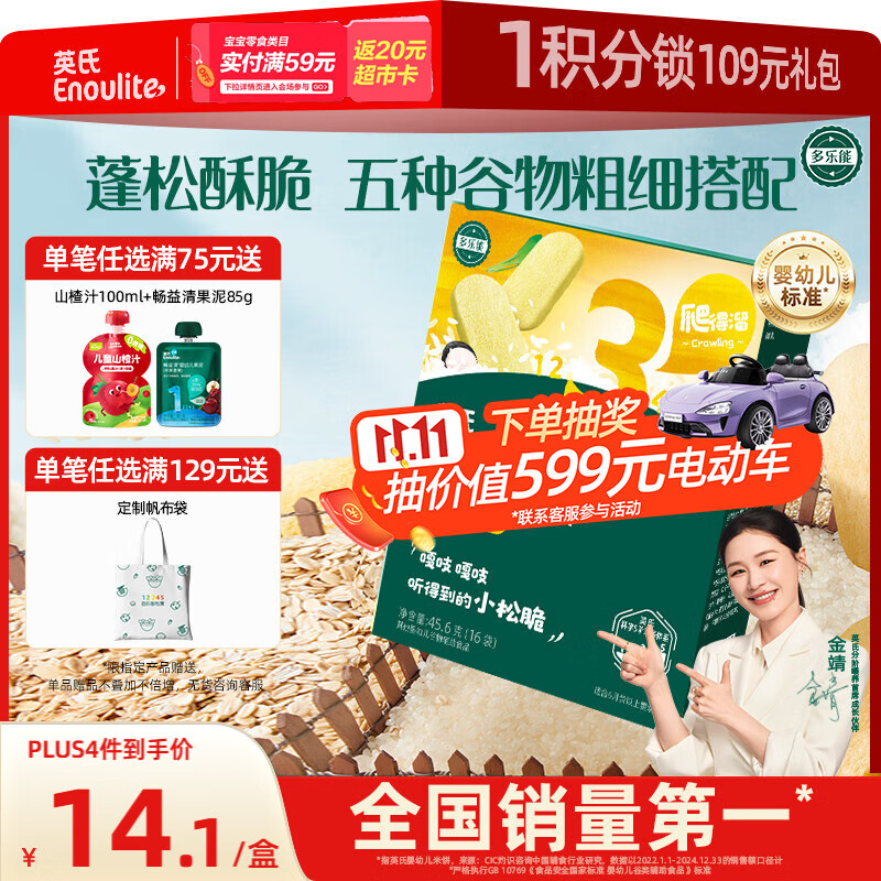 包邮 英氏(Engnice)婴幼儿松脆米饼鳕鱼菠菜味 婴儿宝宝零食磨牙米饼饼干45.6g